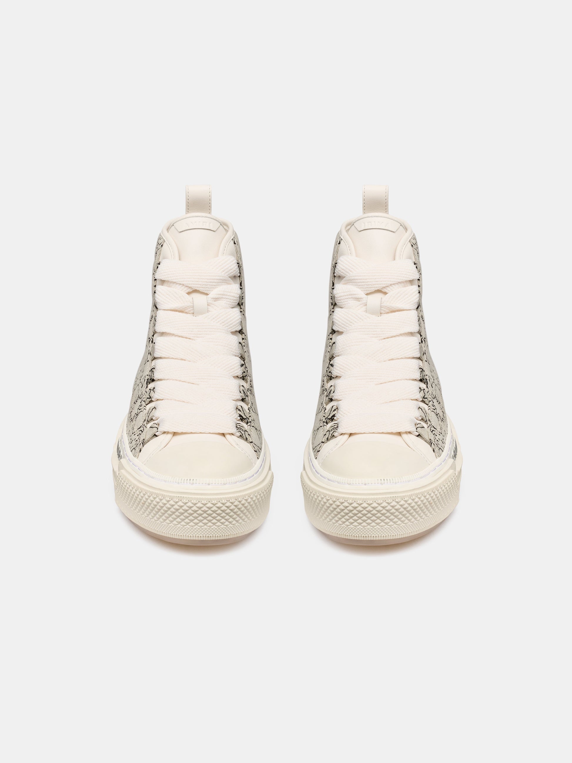 The retro-inspired Court silhouette emerges in a new custom-woven MA Quad-print rendition for Pre-Spring 2026. The MA Quad Court Hi is set on a molded rubber outsole with a custom-woven MA Quad-print upper and MA icon embroidery.