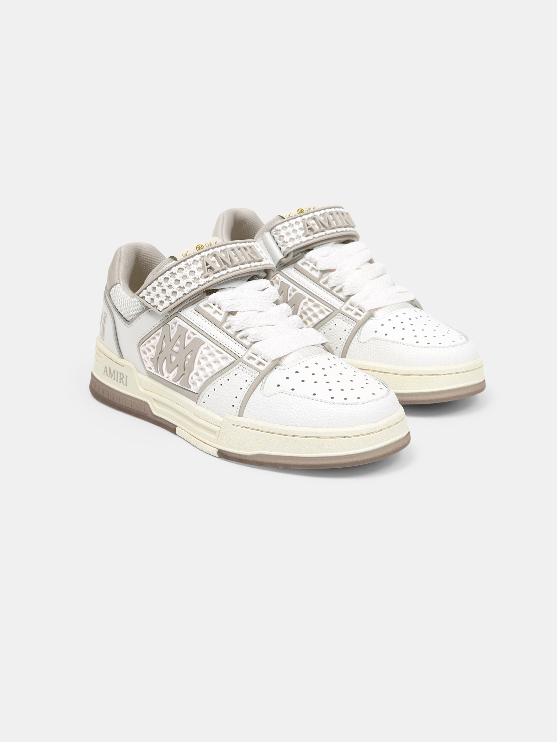 The Pre-Spring 2026 collection introduces the MA Skyline, an all-new interpretation of the retro basketball sneaker with custom-patterned molded rubber elements. The MA Skyline is crafted on a two-tone rubber sole with a leather upper featuring the MA icon and an MA Quad-patterned strap with hook-and-loop closure.