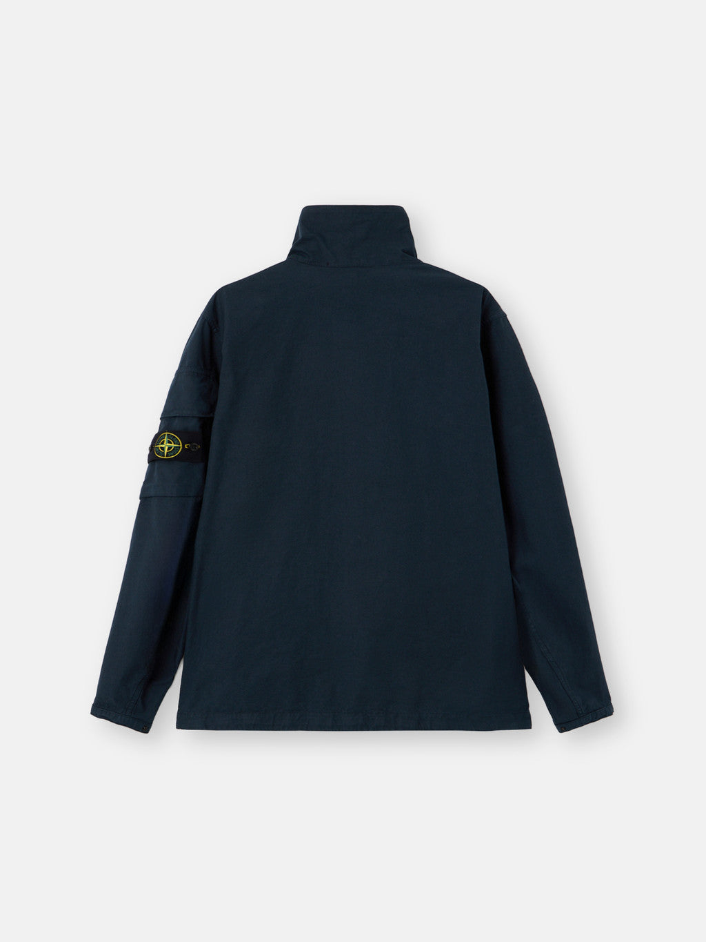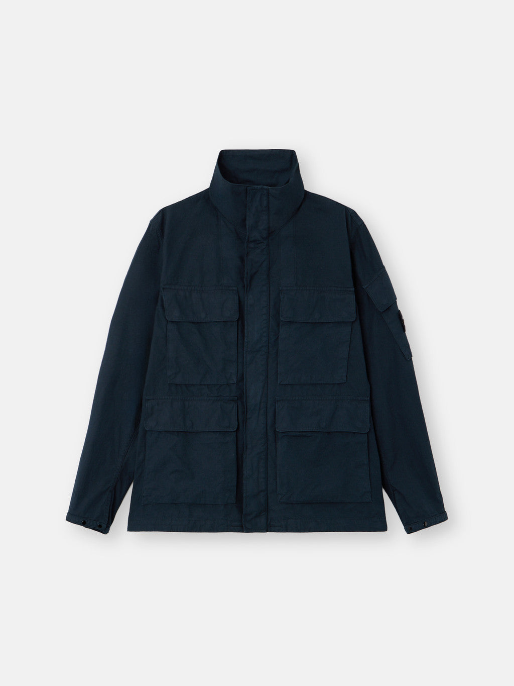 Field jacket in organic canvas weave cotton. The garment dyeing procedure with specific recipes and the addition of an anti-drop agent lends a unique appearance to the piece.