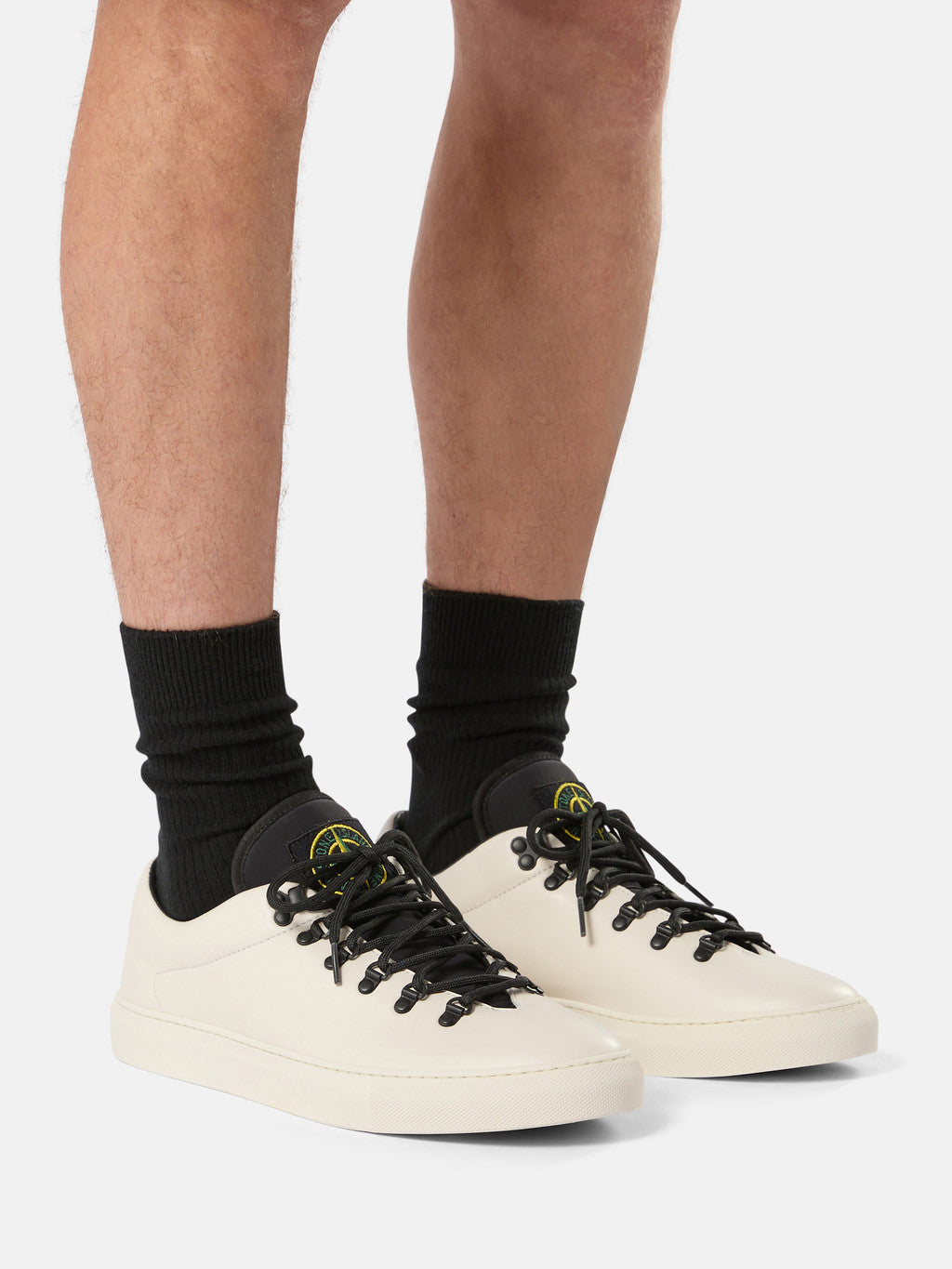 Sneaker in leather. The last shape is the trickle down of a hiking boot into a sneaker shape.