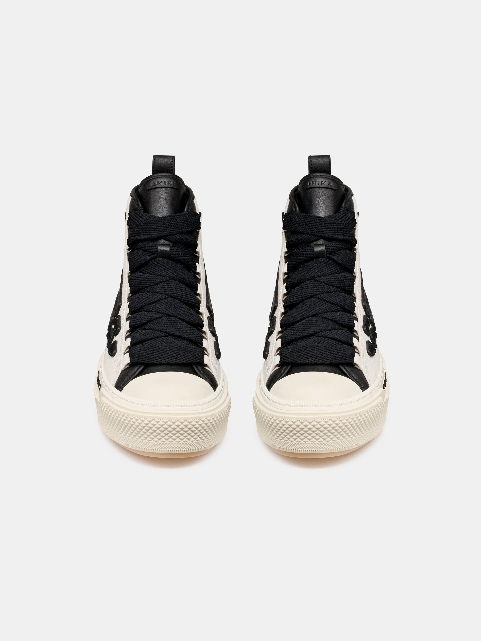 For Pre-Spring 2026, the house's signature bones motif enhances the retro-inspired Court silhouette. The Skel Court Hi sneaker is set on a molded rubber outsole with a canvas upper and bone appliques.