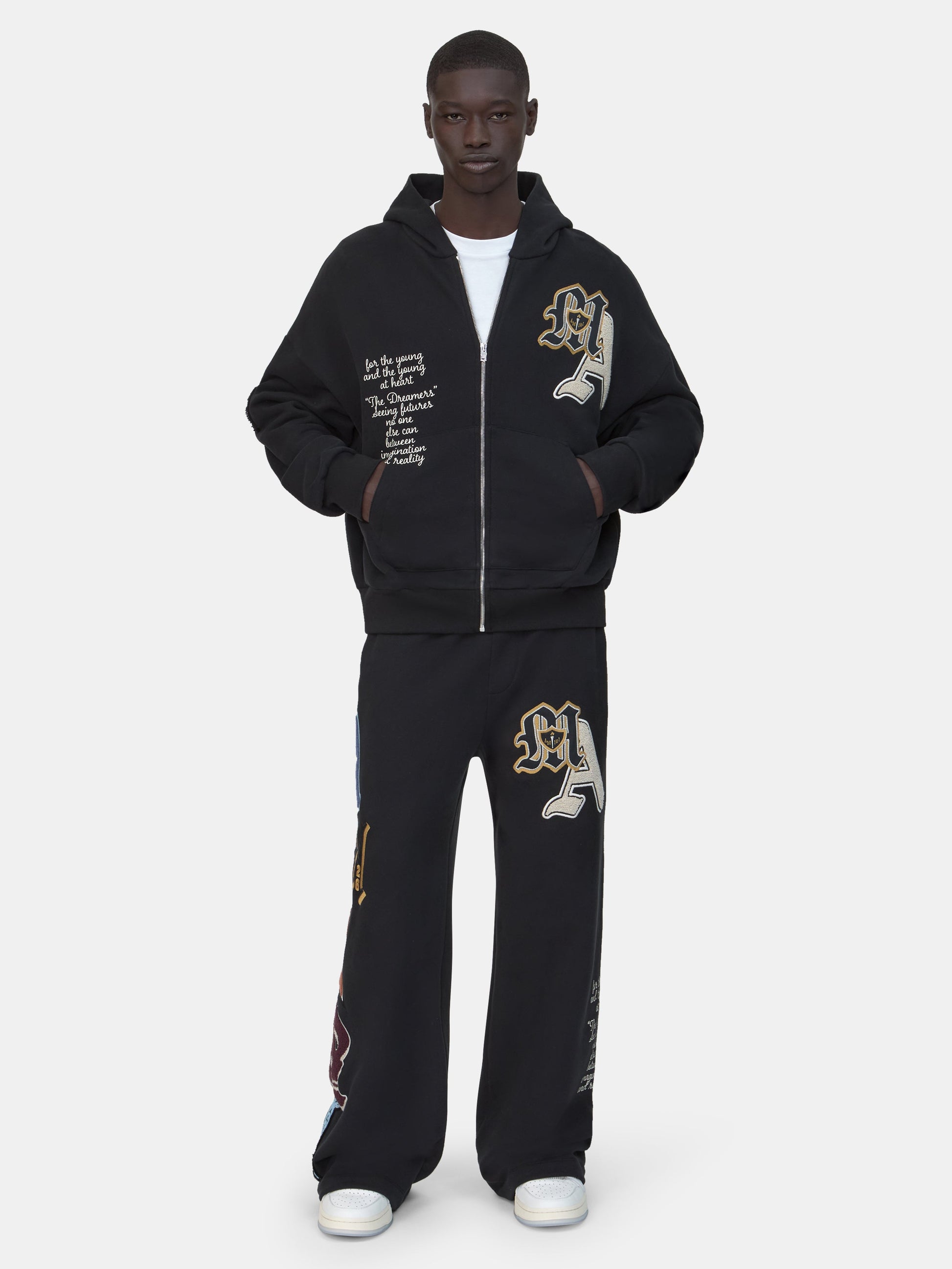 VARSITY PATCH OVERSIZED ZIP HOODIE - Black